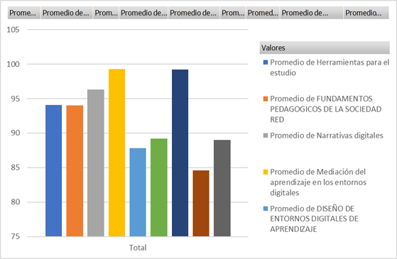Figura 3. Promedio de notas por asignaturas en la maestría en "Educación mención